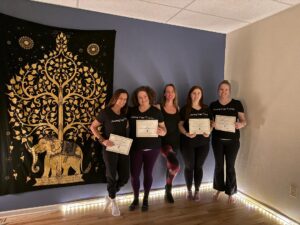 “The program exceeded my expectations. The smaller size class gave us more opportunity to practice teaching. The class content went much more in depth on topics of spirituality, meditation, yoga history than I anticipated. I feel so much better prepared having all the yoga background, tools, and additional materials. Knowing where to access additional information has also been a very key component to helping us transition into teaching. We also covered pose set up, cuing, anatomy and the basic mechanics of yoga – this I expected, and was done in detail with many resources for students to continue to enhance our skills as we go out into the community to teach. Katy Blum is a very knowledgeable teacher but she also recognizes the skill and knowledge others bring to her program. She has the skill necessary to teach, manage and coordinate other teachers to incorporate a wider array of knowledge and experience to her training. If the school of Blue Soul Yoga offered a 500-hour teacher training; I would continue my education here.” – Maureen S.